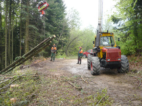Pour respecter de l'environnement, il est plus rationnel d'utiliser le câble-grue dans certaines forêts non exploitées et sans déserte forestière.