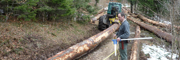 Le bois est cubé en forêt par les gardes-forestiers.