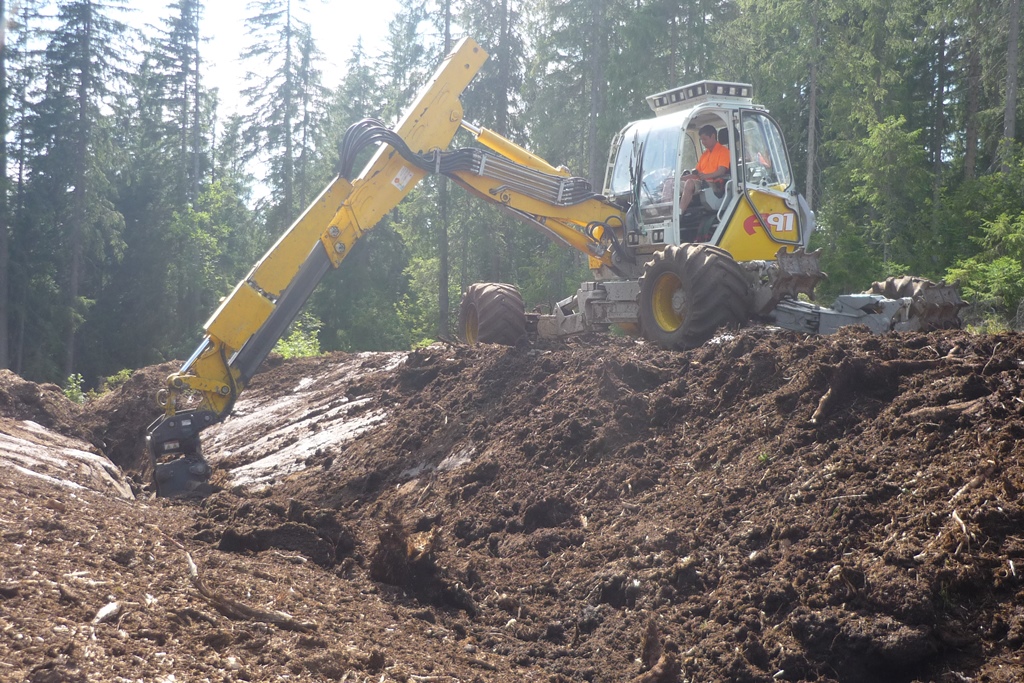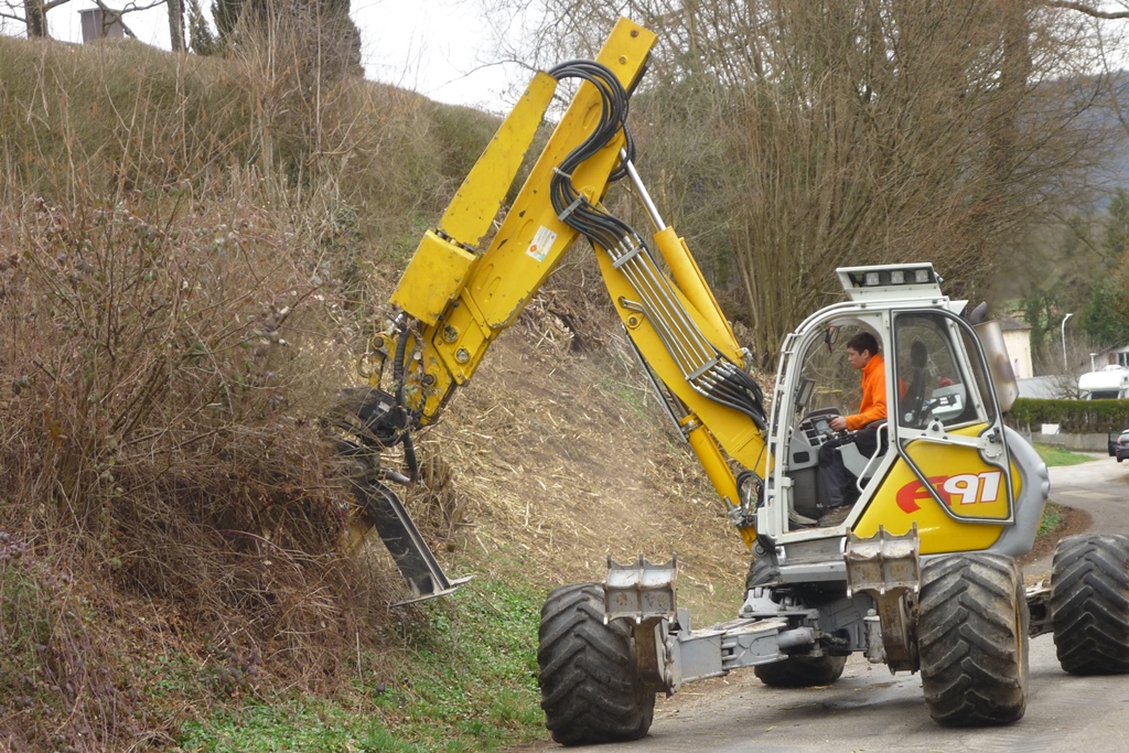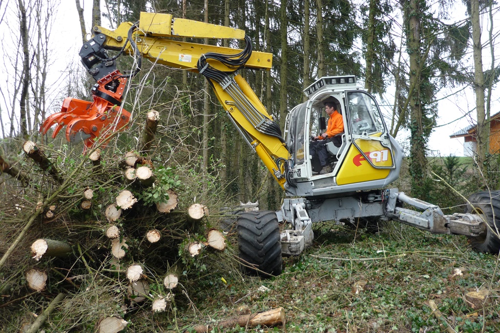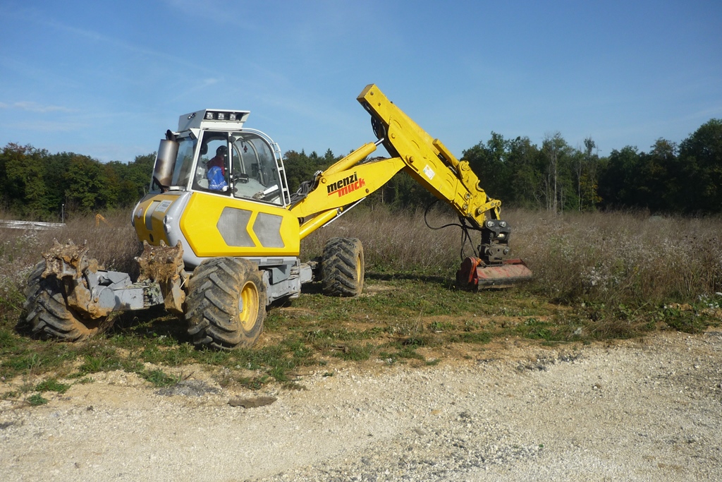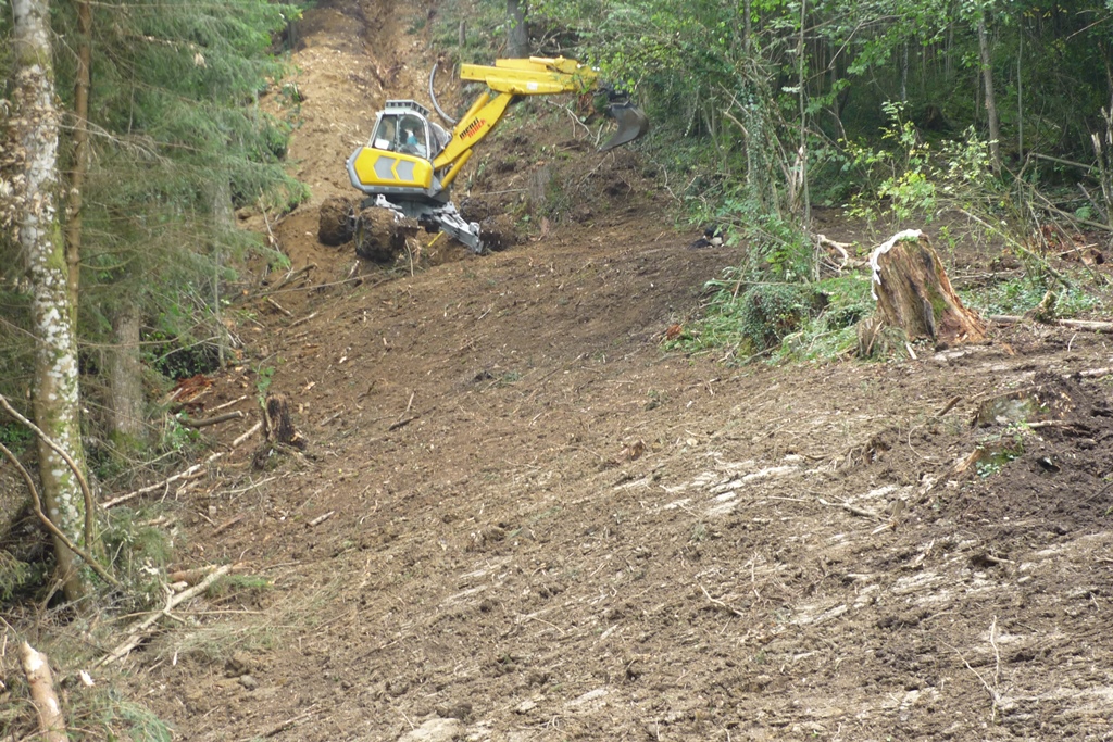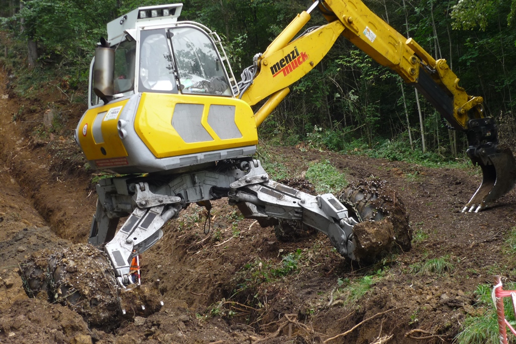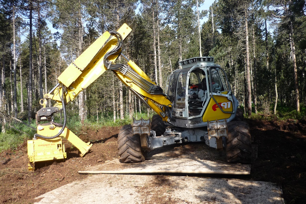 La foresterie Pidoux dispose d'une pelle araignée Menzi A91 et propose ses services dans toute la Suisse romande (Jura, Neuchâtel, Fribourg, Vaud).